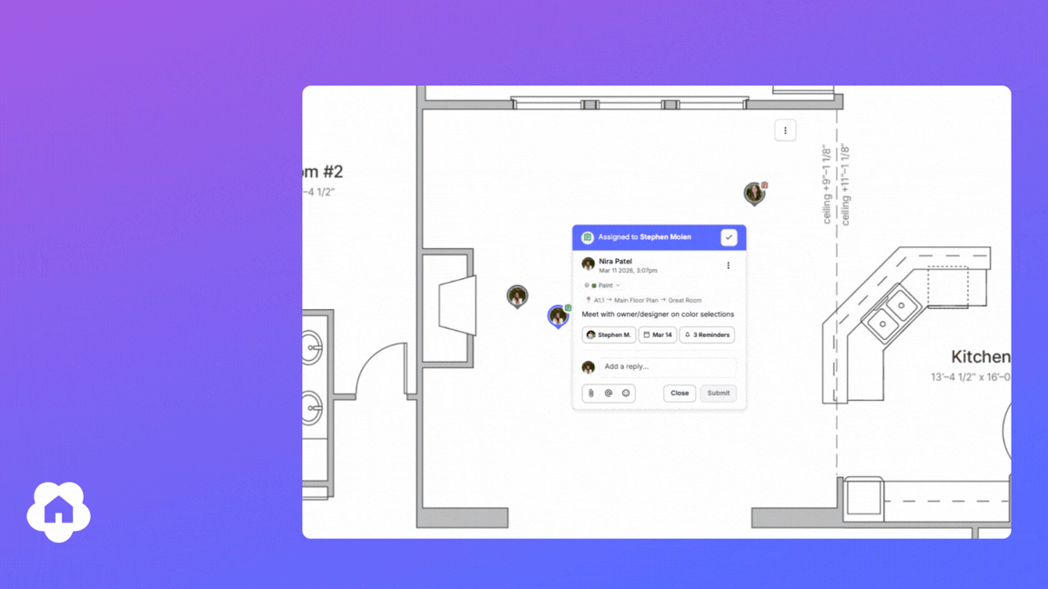 Add photos, reference files, or screenshots directly to a conversation so everyone has the full picture.